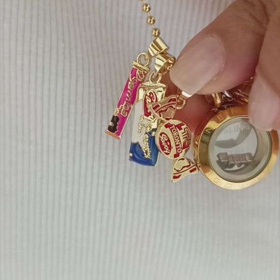 Llévate en el corazón el sabor de nuestra tierra con este collar único que celebra los íconos de nuestra infancia venezolana: Samba, Toronto, chocolate de leche, la Bandera de Venezuela y nuestro Cofre Nena Gosling lleno de amor. 💛💙❤️